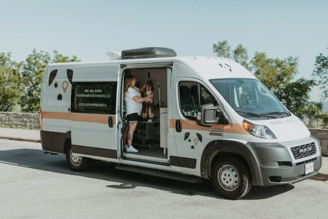 Plush Paws Mobile Grooming salon is a state of the art, self contained grooming van that brings the convenience of the grooming salon to your door. When life shifted to all things remote, this mobile unit was the perfect solution for continuing its dog grooming success.
